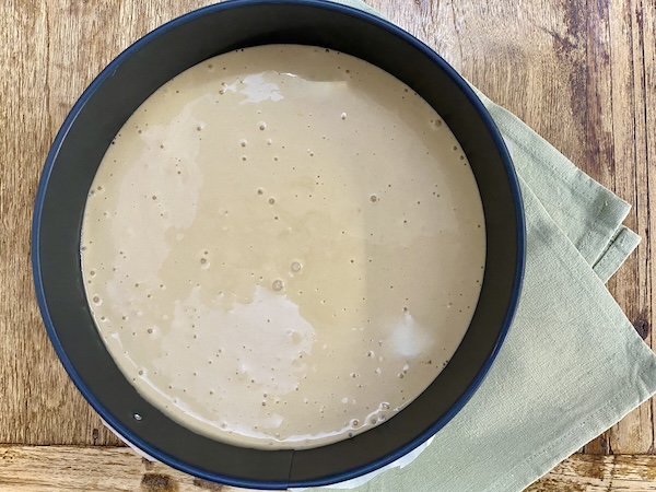 Αδειάζουμε το περιεχόμενο του κάδου σε αντικολλητική φόρμα 24.εκ. ή με λαδόκολλα και ψήνουμε σε προθερμασμένο φούρνο, στους 180ο για 45λεπτά περίπου. Περιμένουμε να κρυώσει λίγο, το ξεφορμάρουμε με προσοχή , το τοποθετούμε σε πιατέλα, πασπαλίζουμε την επιφάνεια με άχνη ζάχαρη, κόβουμε σε κομμάτια κι σερβίρουμε.
