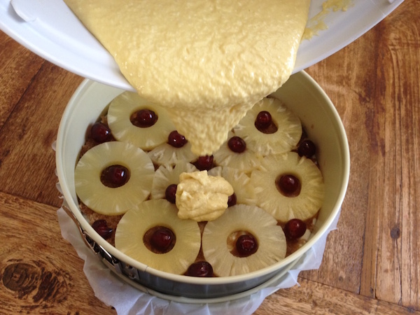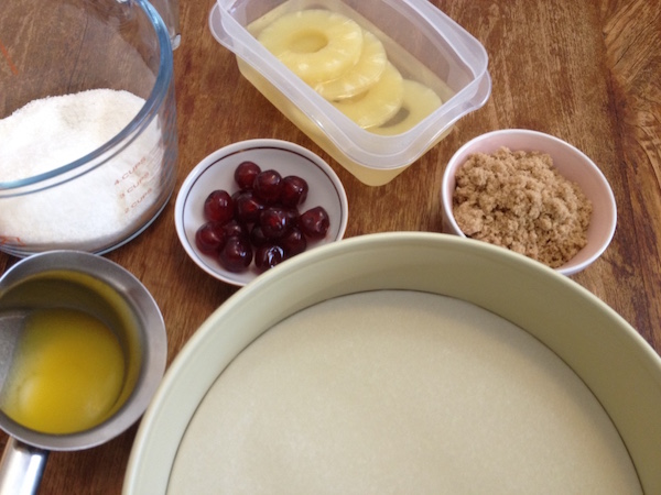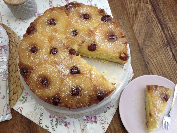 Λοιπόν όχι , δεν έχει μόνο η μηλόπιτα το δικαίωμα να σερβίρεται ανάποδα και να θεωρείται μάλιστα ένα δημοφιλές και αγαπητό , παραδοσιακό γλύκισμα αλλά το έχει κι ο ανανάς. Νόστιμος , ζουμερός και πανέμορφος χαρίζει γενναιόδωρα τα αρώματά του και τους χυμούς του σ’ αυτό το κέικ και το κάνει ιδιαίτερο και εντυπωσιακό. Το κυκλικό , ακτινωτό σχήμα του φρούτου στολίζει την επιφάνειά του κέικ ενώ τα κενά του γεμίζουν με τα κερασάκια μαρασκίνο. Όμως δε σταματάμε εδώ…Θα προσθέσουμε και λίγες νιφάδες αποξηραμένης καρύδας και θα του χαρίσουμε ακόμα πιο εξωτική γεύση. Την επόμενη μέρα είναι ακόμα πιο γευστικό και η γεύση του πιο ώριμη ενώ συνοδεύει άψογα το τσάι.
