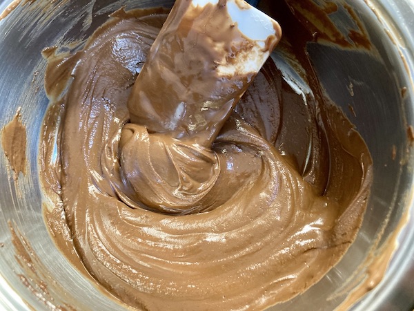 Τότε ετοιμάζουμε το γλάσο: Σε μια μικρή κατσαρόλα ρίχνουμε την κουβερτούρα με το ηλιέλαιο και τη βάζουμε σε μέτρια φωτιά ανακατεύοντας διαρκώς με μια μαρίζ μέχρι να λιώσει η κουβερτούρα και να ενωθούν τα δύο υλικά ώστε να σχηματιστεί ένα βελούδινο γλάσο. Προσθέτουμε τότε και τη γλυκόζη και ανακατεύουμε άλλο λίγο με τη μαρίζ μέχρι να ενσωματωθεί κι αυτή.