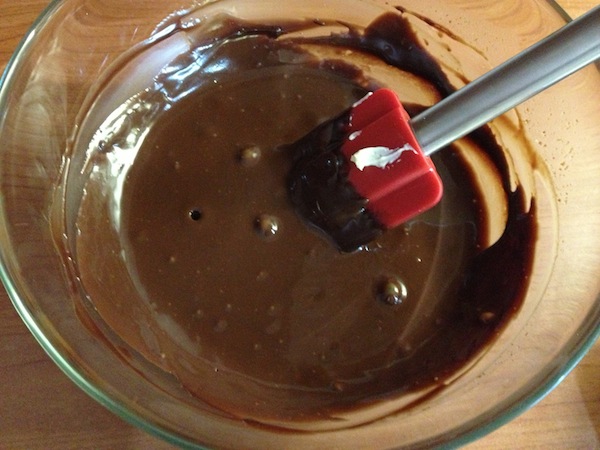 Βάζουμε σε ένα απλωτό σκεύος , σε μέτρια φωτιά , την κουβερτούρα , τη μαργαρίνη , τη ζάχαρη , το κακάο και το ποτό και τα ανακατεύουμε με σύρμα μέχρι να ομογενοποιηθούν τελείως. Προσοχή, δε θέλουμε να πάρει ούτε μια βράση! Όταν είναι έτοιμο το αφήνουμε στην άκρη να κρυώσει για λίγο.