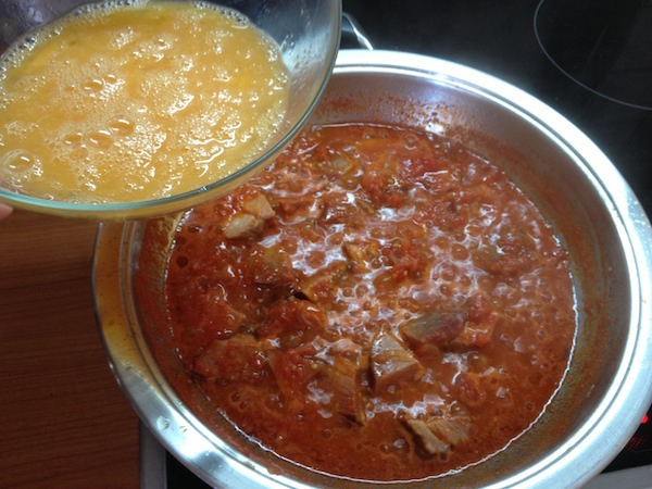 Σε ένα βαθύ τηγάνι ρίχνουμε τις ντομάτες και περιμένουμε να βράσουν και να απορροφηθούν τα υγρά τους. Προσθέτουμε τότε το λάδι και την τσιγαρίδα και τ’ αφήνουμε να πάρουν μία-δυο βράσεις μαζί. Στο μεταξύ χτυπάμε τα αυγά με το σύρμα και τα ρίχνουμε στο τηγάνι φροντίζοντας να καλύψουν ισόποσα όλη την επιφάνεια του τηγανιού. Περιμένουμε να σταθεροποιηθούν κάπως τα αυγά και τότε ανακατεύομε απαλά με ένα πιρούνι. Φροντίζουμε να μαγειρευτούν καλά τα αυγά , να έχουν σφίξει και τότε αποσύρουμε από τη φωτιά.