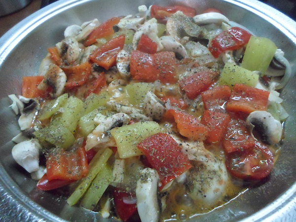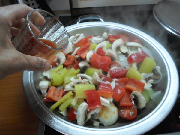 Σημ. : Αν θέλουμε , όταν το φαγητό είναι έτοιμο , το αδειάζουμε σε πυρέξ ή πυρίμαχο σκεύος , προσθέτουμε κομμάτια τυρί φέτα και το “γκρατινάρουμε” για λίγα λεπτά στο γκριλ… Γίνεται υπέροχο…