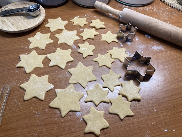Αυτά τα μικρά χαριτωμένα μπισκότα προέκυψαν καταλάθος καθώς έφτιαχνα αστεράκια με λίγη ζύμη που περίσεψε από μια γλυκιά τάρτα για τα Χριστούγεννα. Αυτά λοιπόν ήταν που έκλεψαν την παράσταση και ξετρέλαναν μικρούς και μεγάλους. Την επόμενη φορά , υποσχέθηκα πως δε θα φτιάξω μόνο λίγα με την περισσευούμενη ζύμη μα θα φτιάξω μια ολόκληρη δόση ώστε να τα ευχαριστηθούμε και τα απολαύσουμε με το παραπάνω. Σκέτα , με ζάχαρη άχνη ή με λίγη μαρμελάδα ή με πραλίνα φουντουκιού , μονά ή διπλά σαν γεμιστά , όπως κι αν τα φτιάξουμε , αξίζουν πραγματικά πολύ.