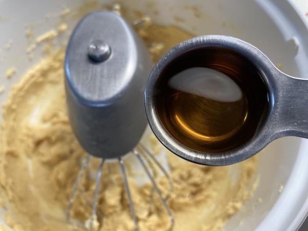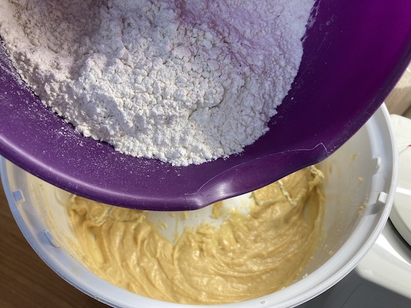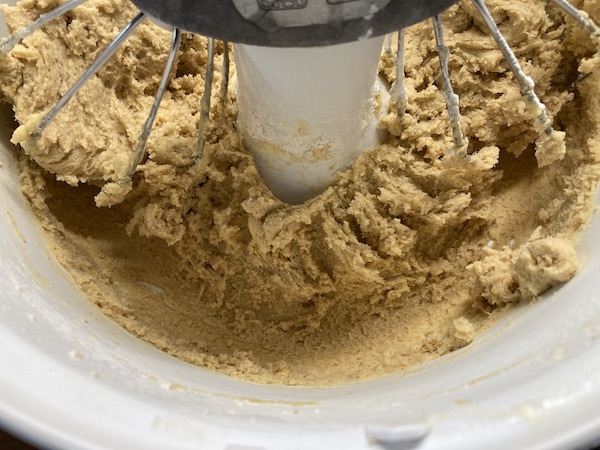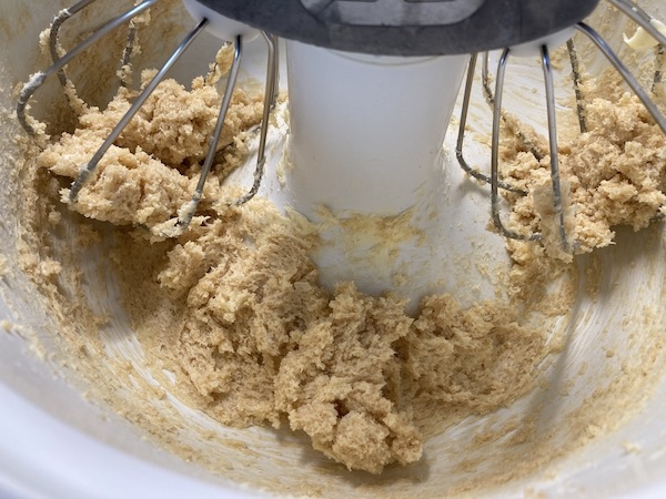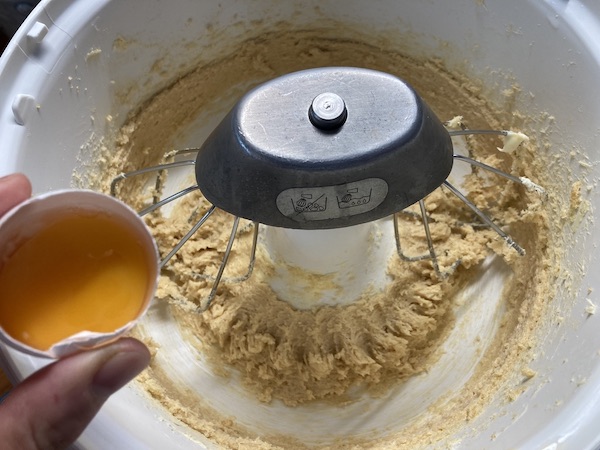 Χτυπάμε στο μίξερ το βούτυρο με τη ζάχαρη μέχρι να αφρατέψουν και συνεχίζουμε με τους κρόκους έναν-έναν , τη βανίλια και το κονιάκ. Προσθέτουμε στη συνέχεια το αλεύρι και το μπέικιν κοσκινισμένα και συνεχίζουμε αναμιγνύοντας απαλά μέχρι να γίνει η ζύμη ομαλή . Θα είναι σαν σφιχτή ζύμη του κέικ και θα κολλάει αλλά αυτό δε μας προβληματίζει. Την τυλίγουμε με μεμβράνη και την τοποθετούμε για μια ώρα τουλάχιστον στο ψυγείο να σφίξει.