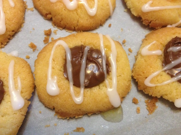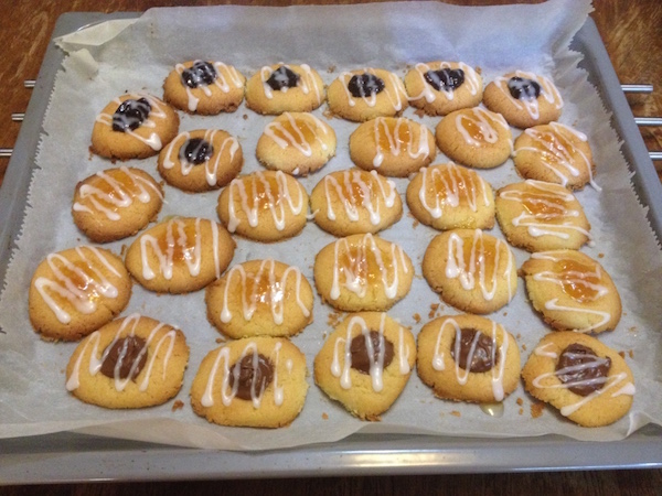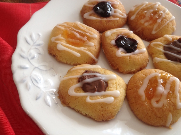 Δεν είμαι σίγουρη ότι ο τίτλος γεμιστά είναι ο πλέον κατάλληλος μιας και όταν αναφερόμαστε σε γεμιστά μπισκότα , συνήθως το μυαλό πηγαίνει σε μπισκότα “σάντουιτς” με μια στρώση μαρμελάδας ή πραλίνας ή κρέμας βανίλιας στο κέντρο. Τα συγκεκριμένα μπισκότα κατά κυριολεξία είναι τα “μπισκότα με το αποτύπωμα του αντίχειρα” , εξού και η μετάφραση της λέξης “thumbprint” και με μια πιο απλή περιγραφή θα τα έλεγα υπέροχα , τραγανά , βουτυρένια μπισκότα με μια λακουβίτσα στο κέντρο γεμάτη πλούσια γεύση μαρμελάδας ή πραλίνας. Την πανδαισία συπληρώνει μια λεπτή κλωστή γλάσου που κάνει τα μικρά , χαριτωμένα μπισκότα ακόμα πιο όμορφα…Συνηθίζεται να φτιάχνονται στις γιορτές των Χριστουγέννων μα δε βρίσκω το λόγο γιατί να μην τα φτιάχνουμε πιο συχνά αφού είναι απολαυστικά , πανέμορφα και διασκεδαστικά στην παρασκευή τους. Δοκιμάστε τα μαζί με μια κούπα τσάι , θα με θυμηθείτε…