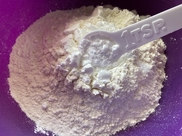Σε ένα μεγάλο μπωλ ρίχνουμε το αλεύρι , το κορν φλάουρ , το αλάτι και τη σόδα και τα ανακατεύουμε.
