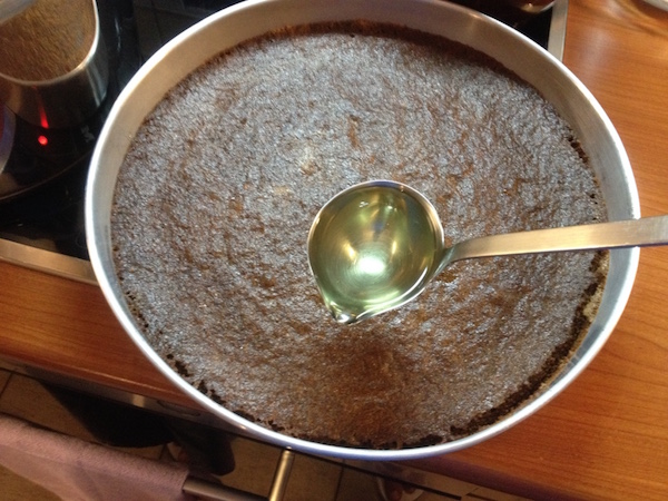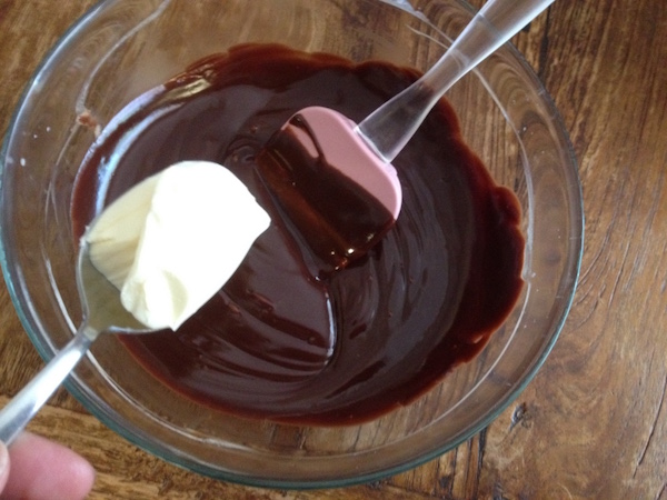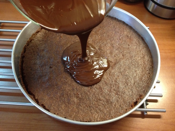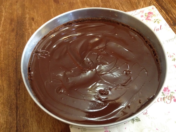 Το αφήνουμε στην άκρη για λίγο μέχρι να κρυώσει ελαφρά κι ετοιμάζουμε την επικάλυψη σοκολάτας: