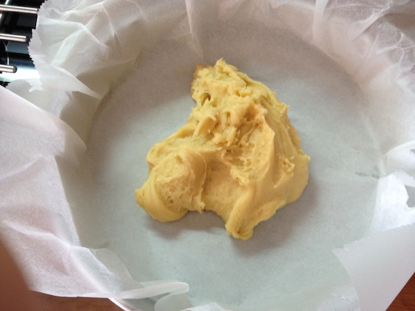 Όταν ψηθεί περιμένουμε να κρυώσει , ξεφορμάρουμε με προσοχή πάνω σε σχάρα , αφαιρούμε τη λαδόκολλα και την αφήνουμε εκεί για λίγη ώρα .